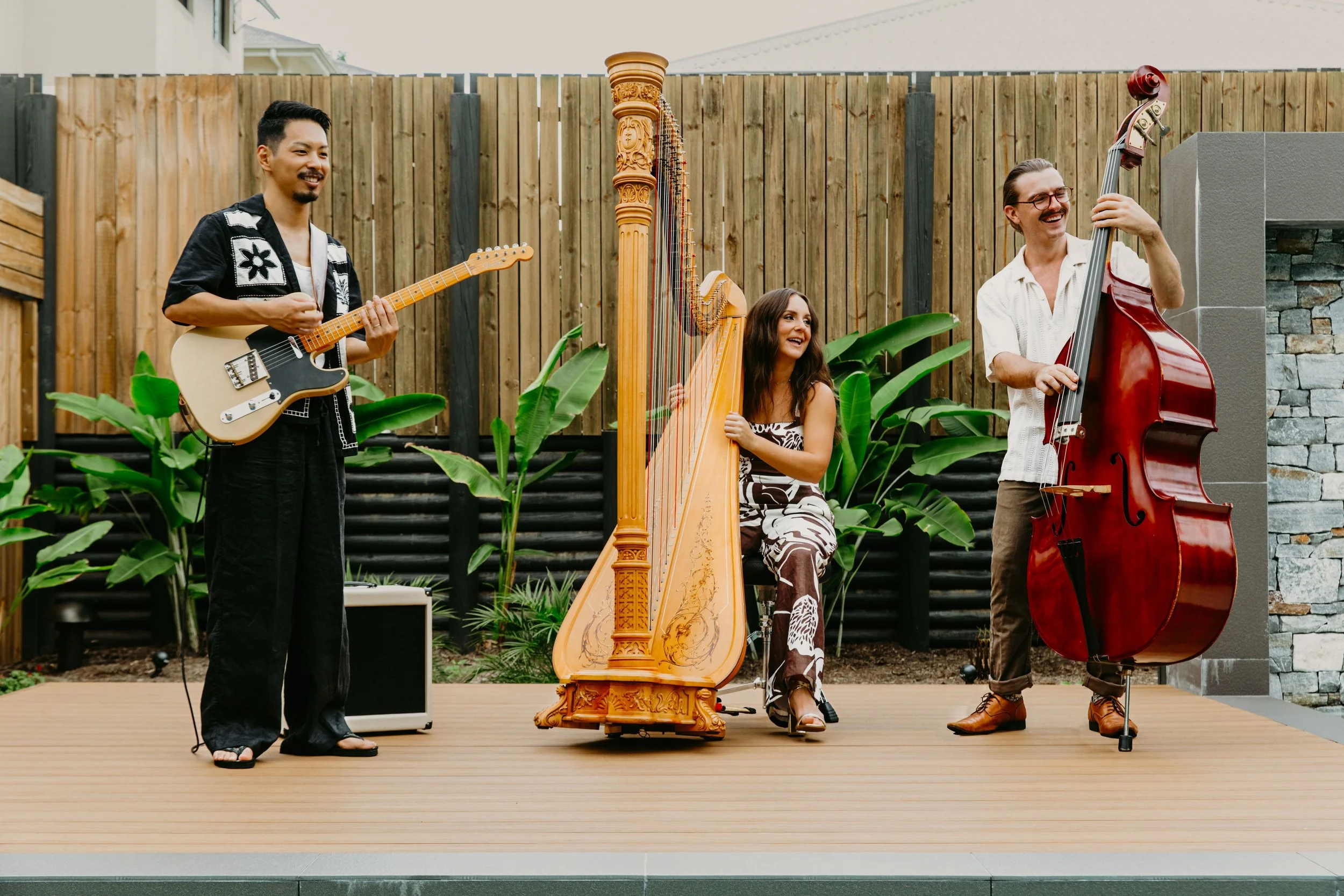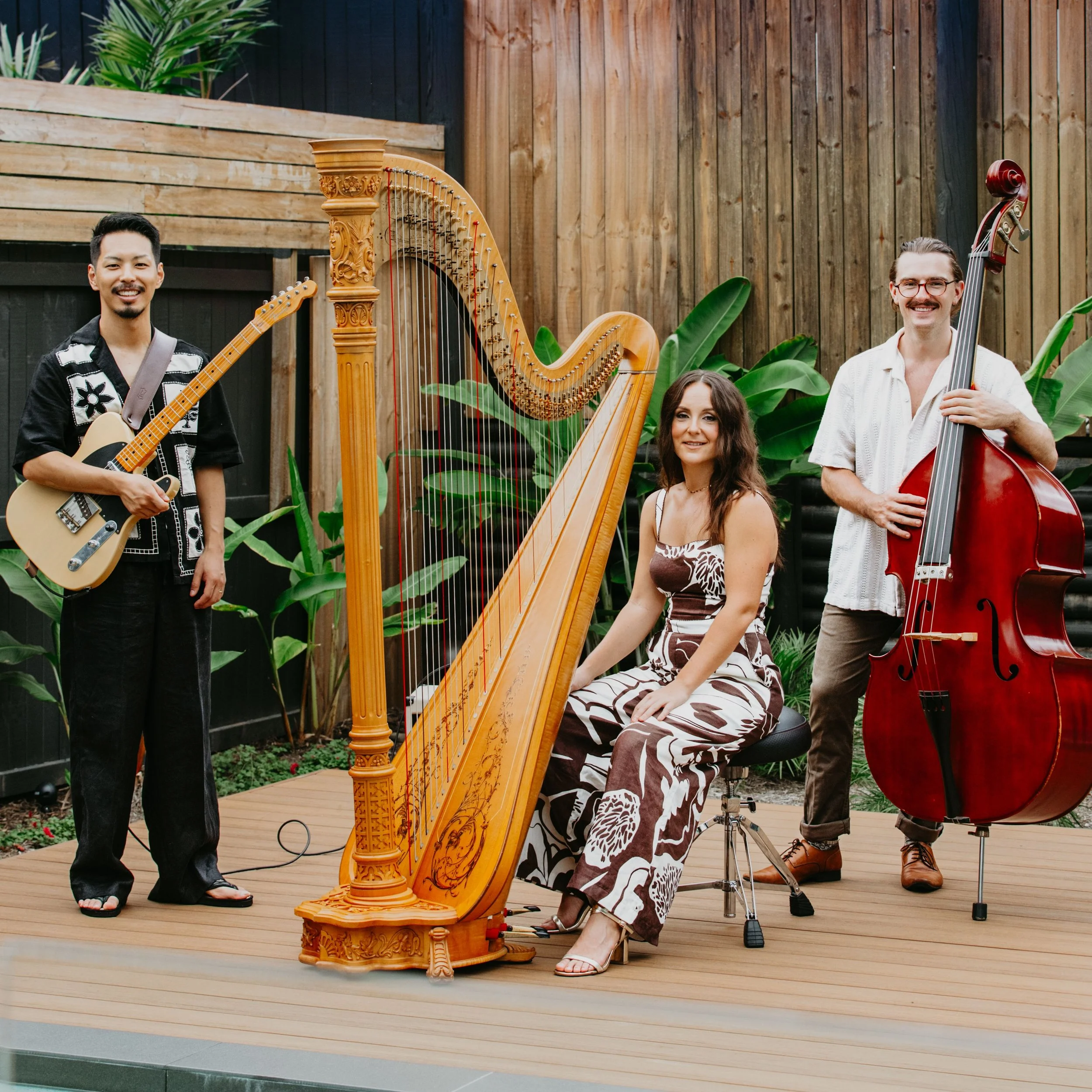 ALONDRA is a rare find in event entertainment—refined, intriguing, and utterly distinctive. With the unexpected pairing of harp, jazz guitar, and double bass, this trio brings a fresh and sophisticated sound to corporate events, private celebrations, galas, awards nights and any exclusive event. Their curated repertoire of soul, groove and contemporary covers with a jazz-laced twist creates a rich, atmospheric backdrop that elevates any occasion. Visually striking and musically captivating, ALONDRA offers a complete sensory experience—one that will leave a lasting impression with your guests.